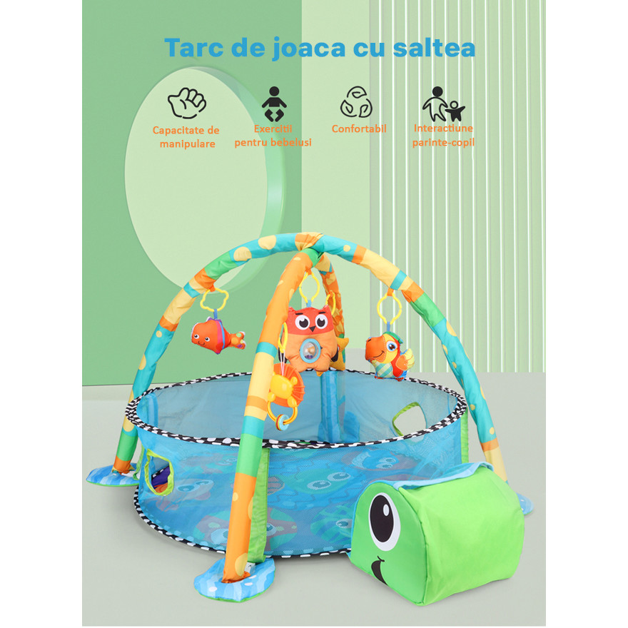 Saltea Moale și Impermeabilă: Salteaua confortabilă și impermeabilă oferă un loc sigur pentru copilul dumneavoastră să se joace, să se miște și să descopere lumea inconjurătoare.