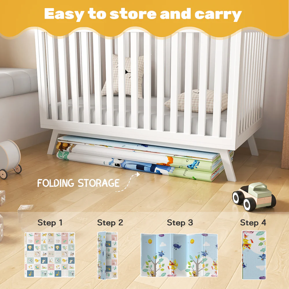 Covor de joaca termic pentru bebelusi si copii XXL, 200x180x2cm, Spuma XPE, Interactiv si educativ