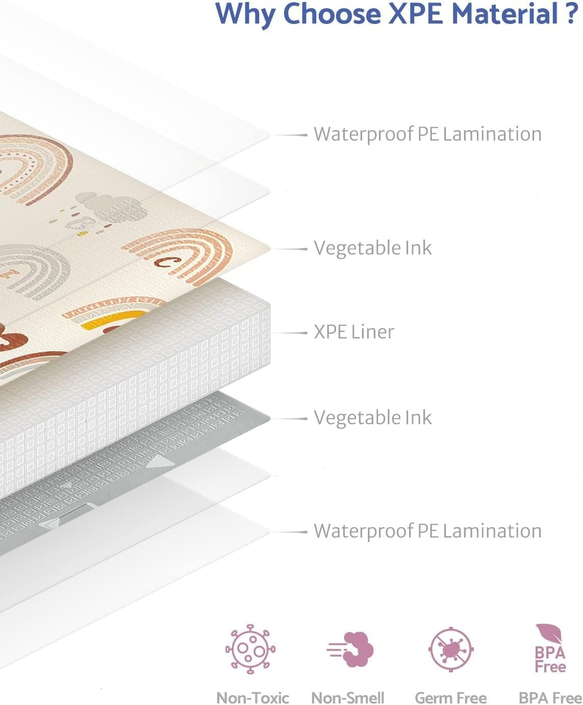 MATERIAL XPE SIGUR - Covorasul nostru pentru bebelusi este fabricat din material spuma XPE de inalta densitate, non-toxic, inodor si nu se rupe usor. Ofera o suprafata de joaca moale si sigura pentru copii mici si sugari. Covorase de joaca excelente pentru sugari, de la nou-nascuti la copii mici. Textura antiderapanta pentru a preveni alunecarea usoara a bebelusului atunci cand invata sa mearga. Covorasul este potrivit pentru toate podelele dure si poate oferi o amortizare suficienta, in special atunci cand bebelusii cad.