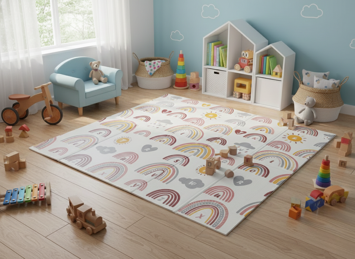 PLIABIL SI PORTABIL - Covorasul nostru de joaca din spuma pentru bebelusi este conceput pentru a fi pliabil, facilitand depozitarea usoara si compacta, potrivit pentru interior si exterior, astfel incat puteti impacheta acest covoras de joaca portabil in masina pentru a-l lua la plaja, in parc sau oriunde altundeva se joaca bebelusul dumneavoastra.