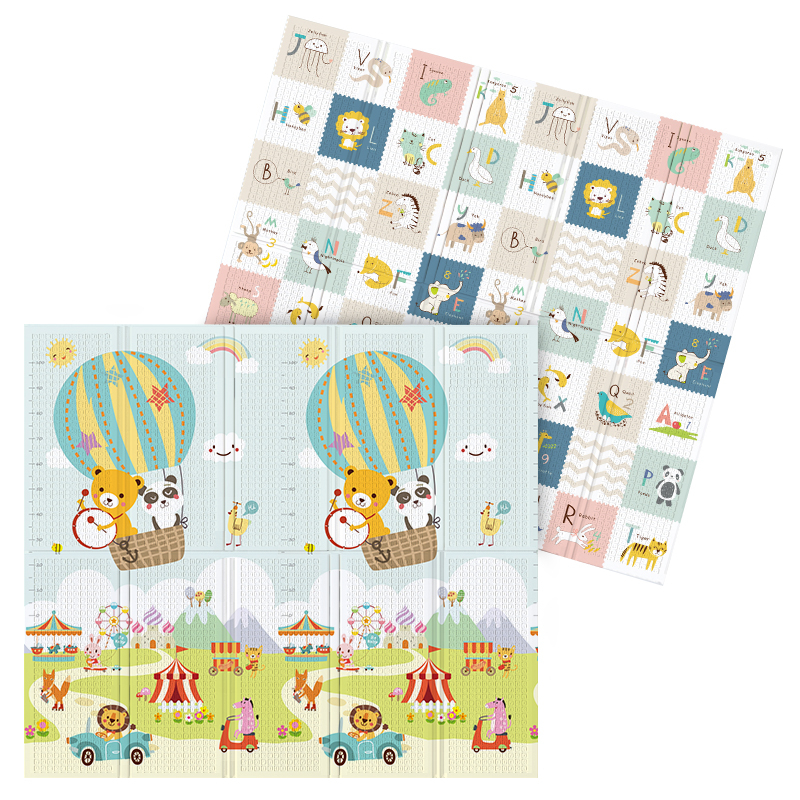 DESIGN REVERSIBIL - Covorasul nostru de joaca din spuma este reversibil, avand modele diferite pe fiecare parte. O parte balon cu aer cald pentru a mentine bebelusii interesati si curiosi, in timp ce cealalta parte are un design cu animalute si litere. Acest covoras de joaca este, de asemenea, potrivit pentru a fi utilizat cu diverse tarcuri pliabile pentru bebelusi, oferind un loc moale si confortabil pentru micutul tau.