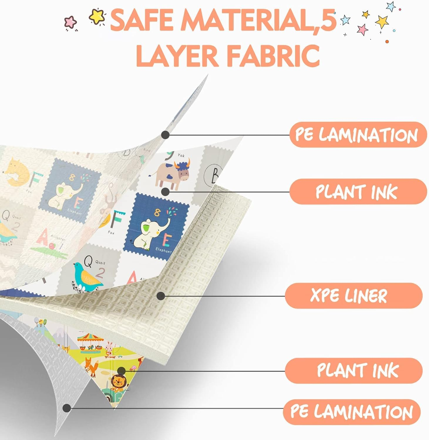 MATERIAL XPE SIGUR - Covorasul nostru pentru bebelusi este fabricat din material spuma XPE de inalta densitate, non-toxic, inodor si nu se rupe usor. Ofera o suprafata de joaca moale si sigura pentru copii mici si sugari. Covorase de joaca excelente pentru sugari, de la nou-nascuti la copii mici. Textura antiderapanta pentru a preveni alunecarea usoara a bebelusului atunci cand invata sa mearga. Covorasul este potrivit pentru toate podelele dure si poate oferi o amortizare suficienta, in special atunci cand bebelusii cad.