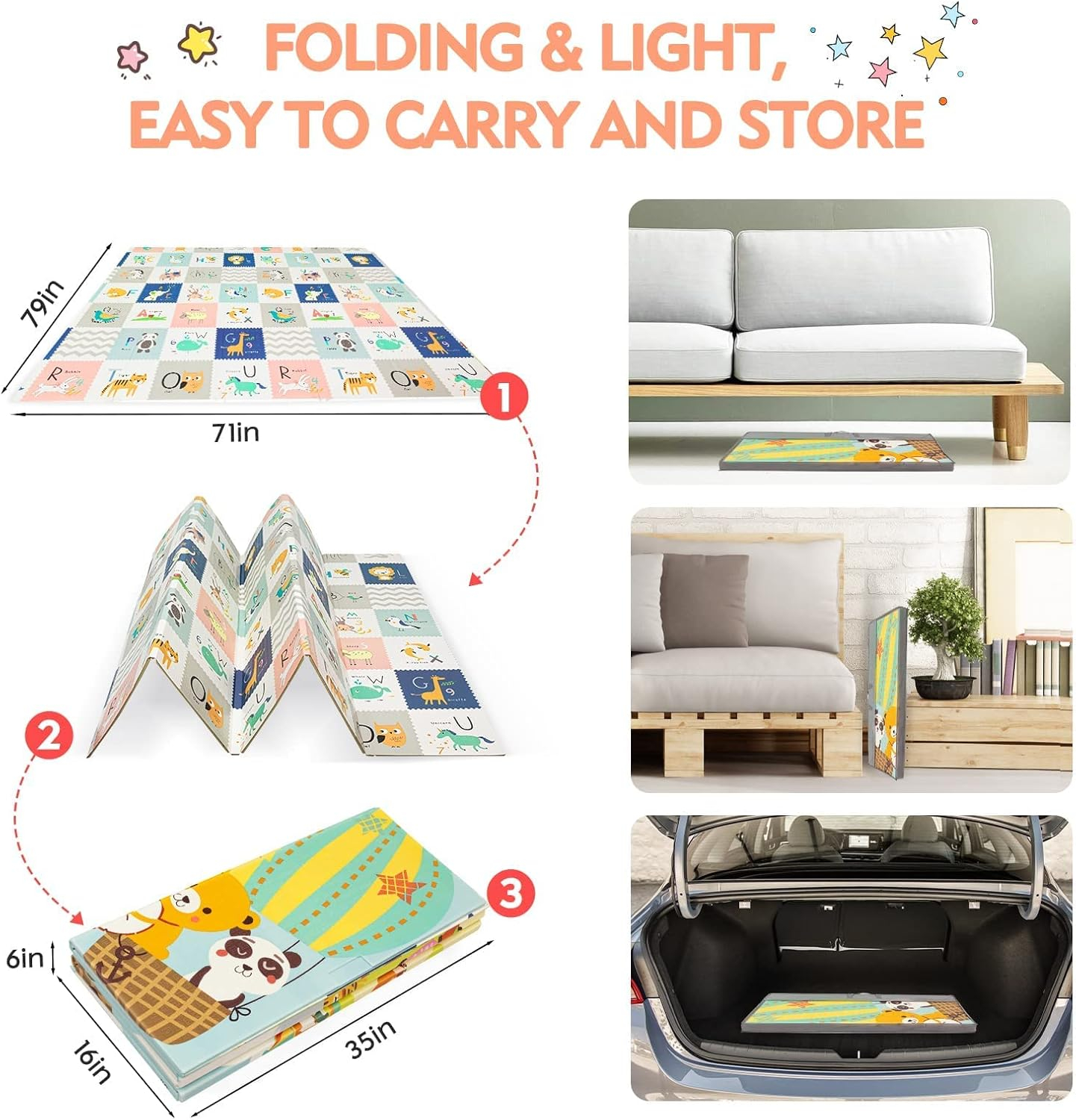 PLIABIL SI PORTABIL - Covorasul nostru de joaca din spuma pentru bebelusi este conceput pentru a fi pliabil, facilitand depozitarea usoara si compacta, potrivit pentru interior si exterior, astfel incat puteti impacheta acest covoras de joaca portabil in masina pentru a-l lua la plaja, in parc sau oriunde altundeva se joaca bebelusul dumneavoastra.