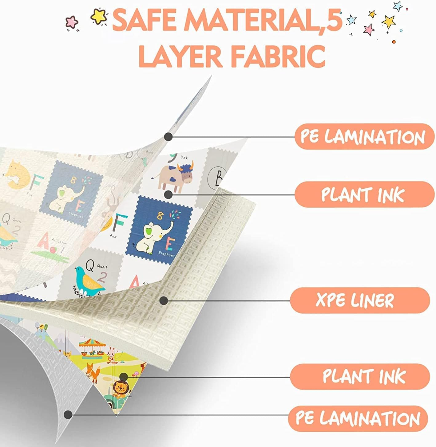 MATERIAL XPE SIGUR - Covorasul nostru pentru bebelusi este fabricat din material spuma XPE de inalta densitate, non-toxic, inodor si nu se rupe usor. Ofera o suprafata de joaca moale si sigura pentru copii mici si sugari. Covorase de joaca excelente pentru sugari, de la nou-nascuti la copii mici. Textura antiderapanta pentru a preveni alunecarea usoara a bebelusului atunci cand invata sa mearga. Covorasul este potrivit pentru toate podelele dure si poate oferi o amortizare suficienta, in special atunci cand bebelusii cad.
